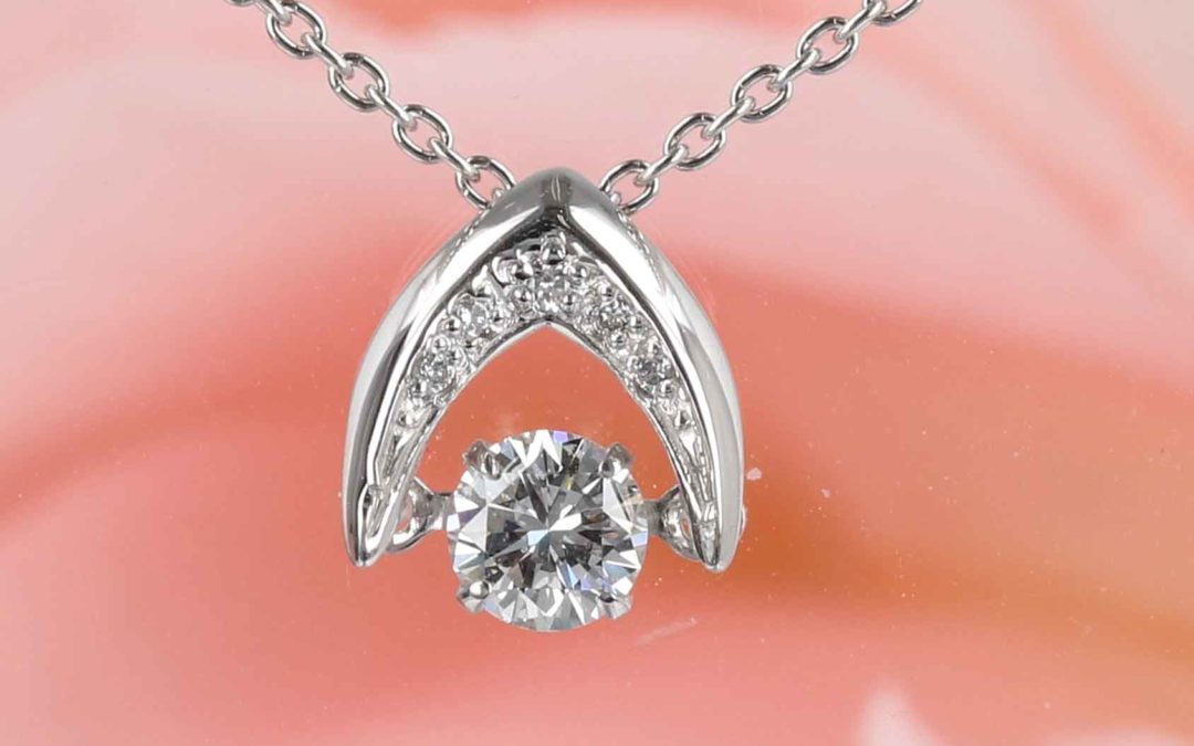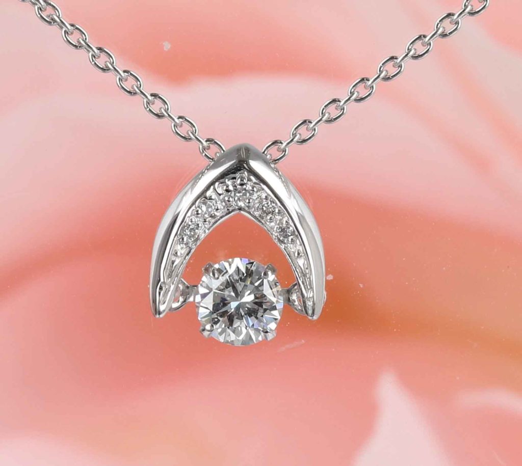 ダンシングペンダントも色々なデザインがありますが、お客様が気に入られたのはメレダイヤ入りの逆V字型で、ダイヤがチラチラと揺れるタイプです。